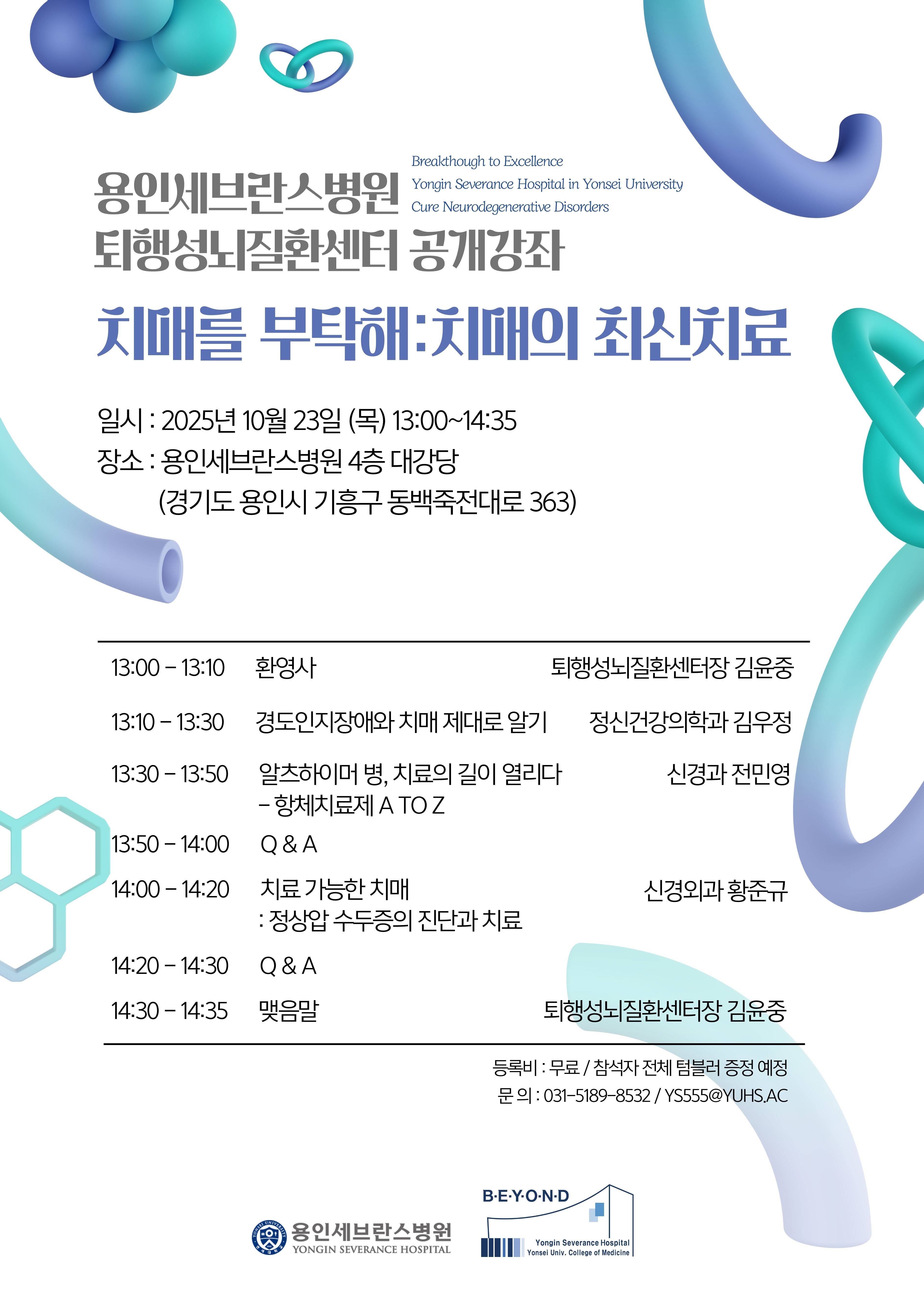 [퇴행성뇌질환센터] 공개 강좌, 치매를 부탁해 : 치매의 최신치료